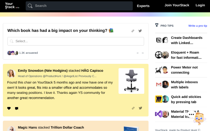 5. YourStack (Web): Personal Product Recommendations From Tech Community