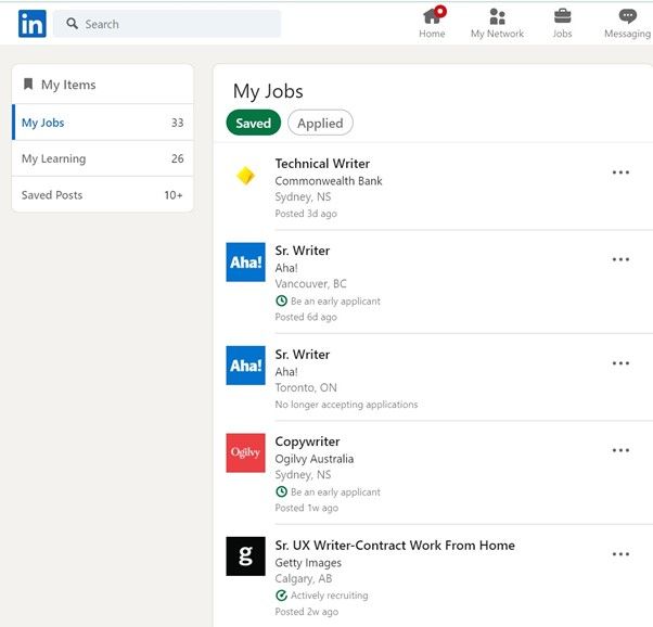 To look at your saved jobs on LinkedIn, select Jobs > My Jobs. Besides seeing your saved jobs, you can also check the status of any LinkedIn Premium courses you're currently working through.