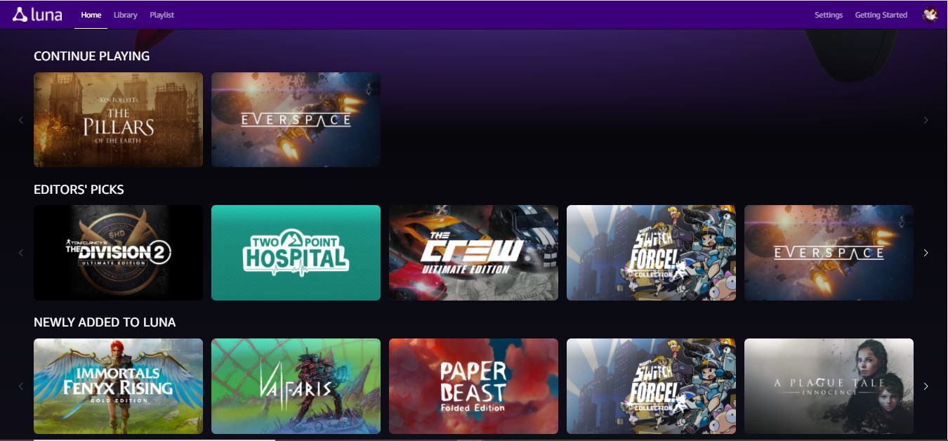 Whatever the future holds, Luna currently has an expanding library of titles for however you most like to play, with no download or update times standing between you and your games.
