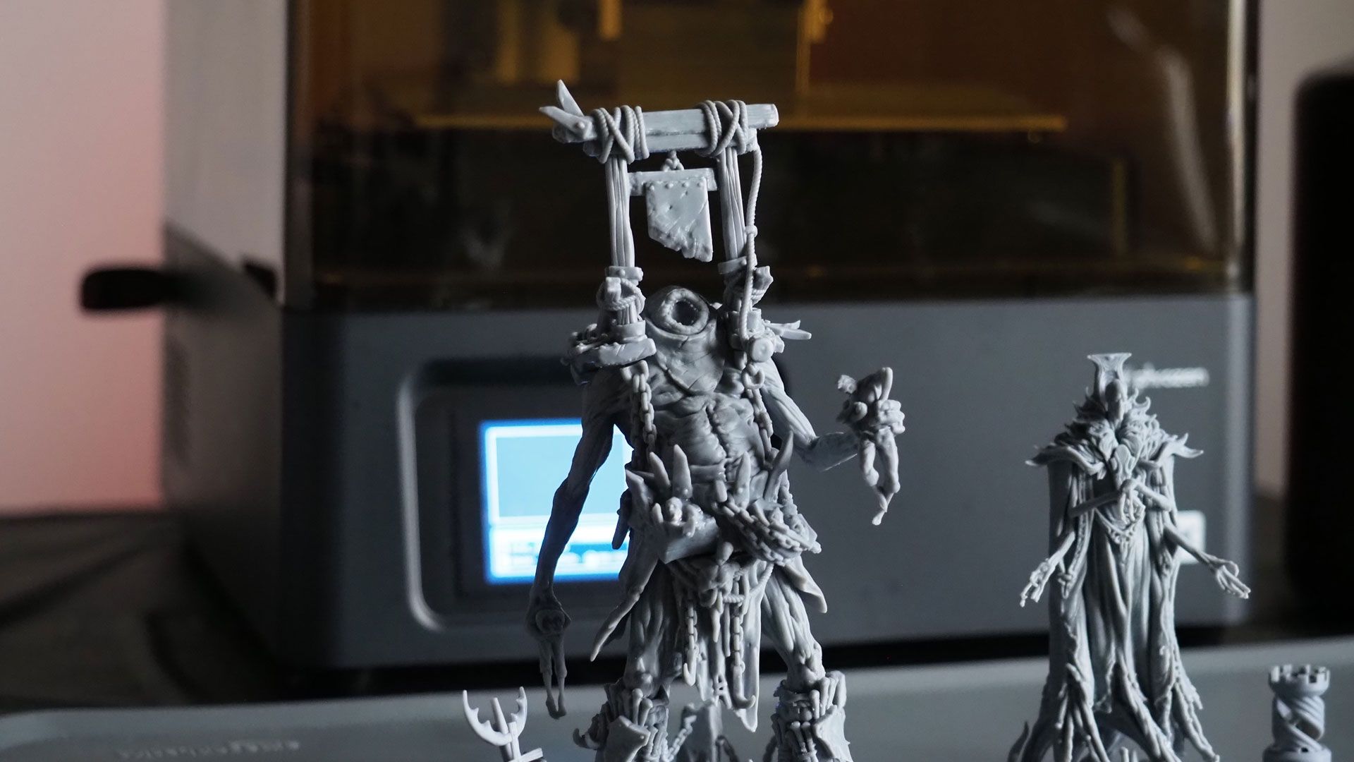 With the Phrozen OS, it’s very easy to select your sliced files, start a print, and come back hours later to see the results. To test this process, I tried an assortment of different model sizes from Bestiarum Miniatures.