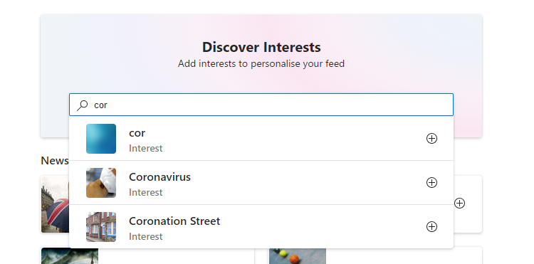- A new Microsoft Edge window will open on the My Feed page, from which you can begin adding specific interests.
