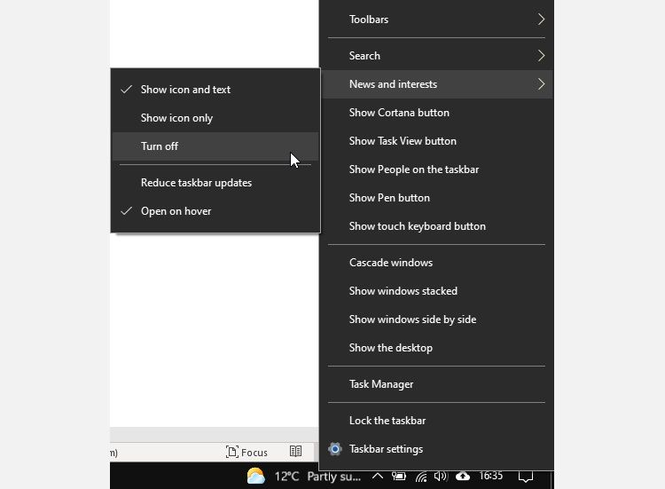 - Right-click news and interests on the taskbar.
