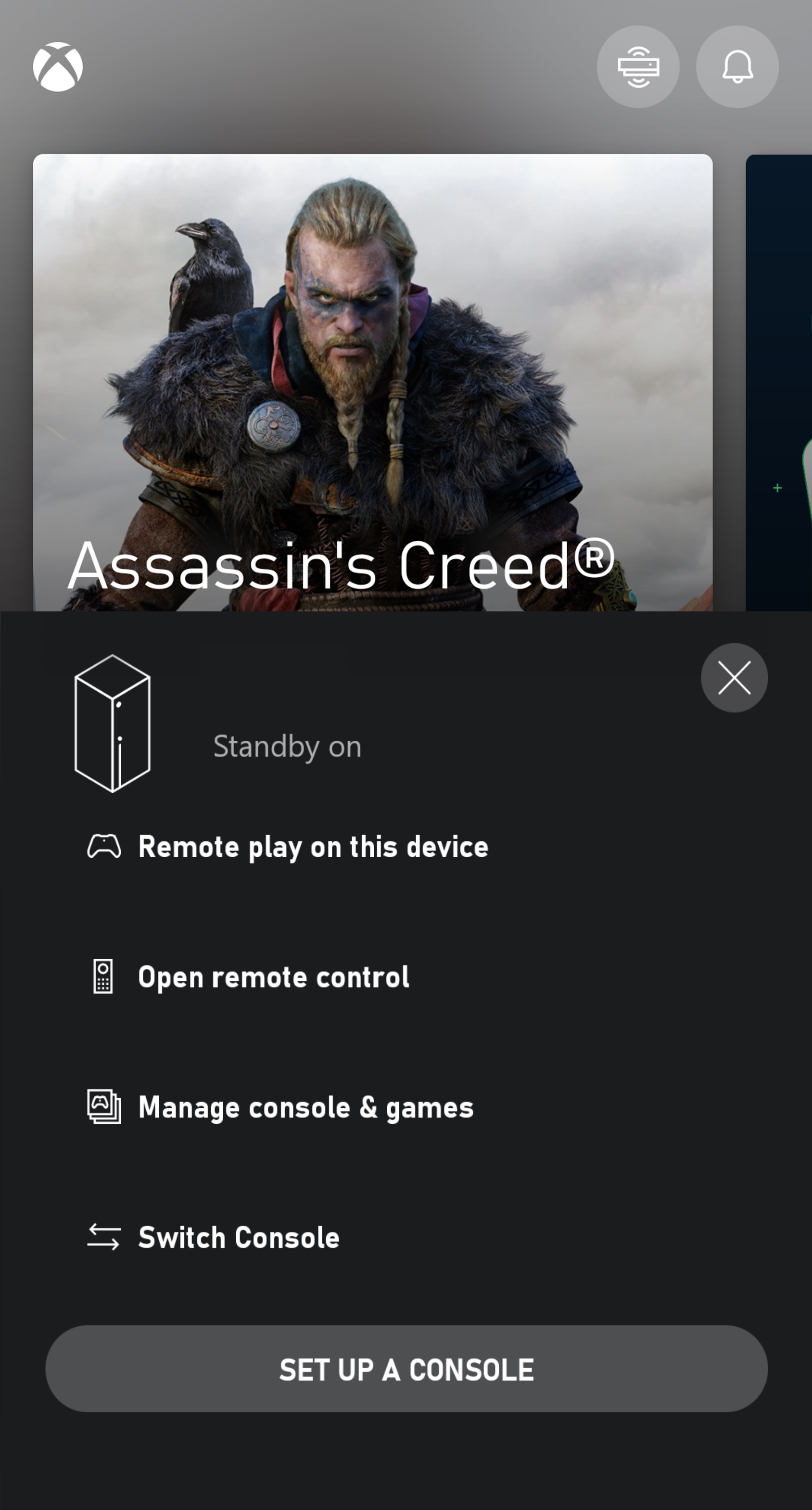 • If you haven’t done so already, select Set Up A Console. If you have linked your console to the app, choose Remote play on this device.