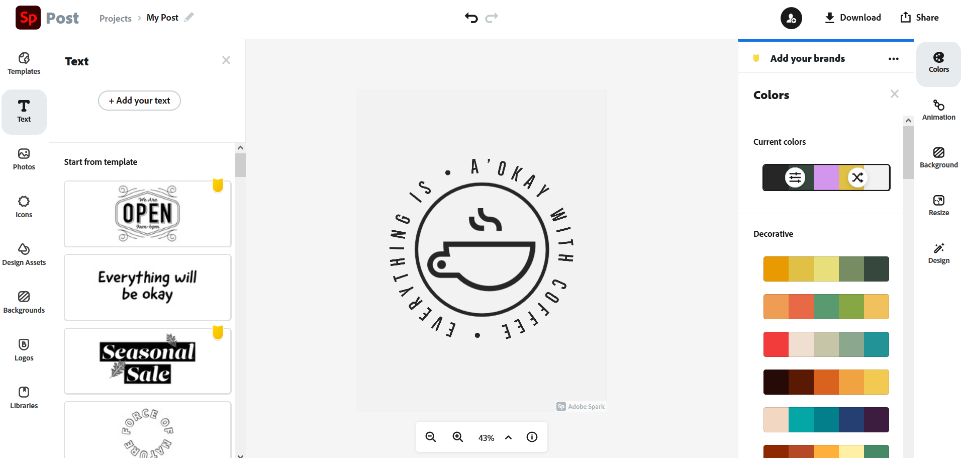Adobe Spark is one of the best places for putting together fun and professional artwork. You can start with a free account, containing limited but still interesting features, from beautiful stock images to eye-catching fonts. Upgrading to a premium subscription gives you more tools.