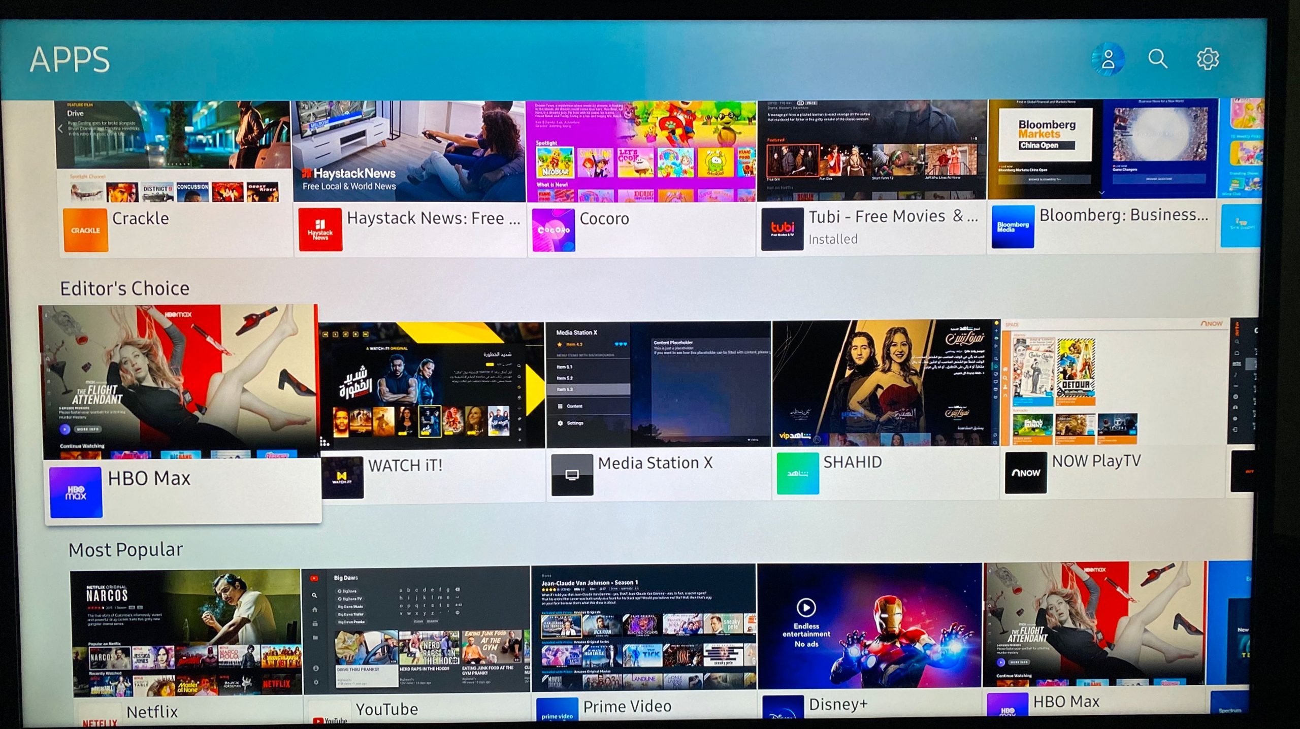 This will open the Apps page (essentially the store and settings all in one), where you can see all the offerings available for your Samsung TV. Use the navigation page to look around the headings on the homepage, such as Editor’s Choice and Most Popular.