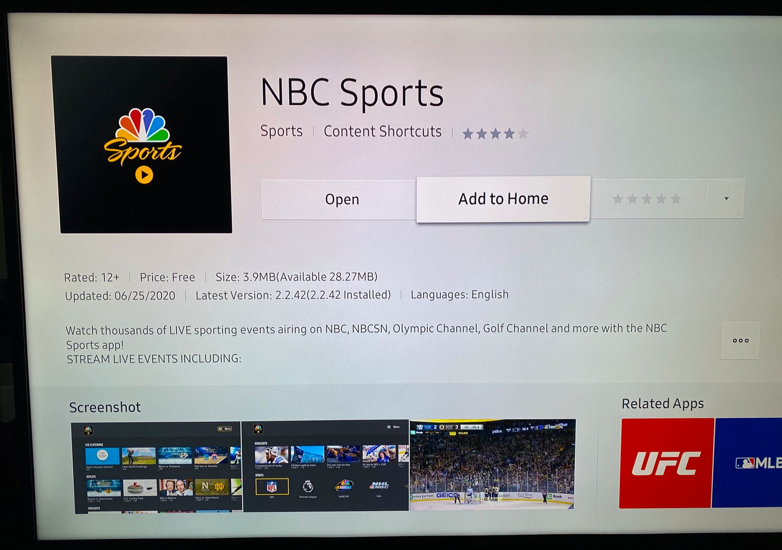When you open an app’s page, you’ll see information about it, like its size, date of last update, screenshots, and a brief description. To install the app to your TV, simply hit the big Install button here.