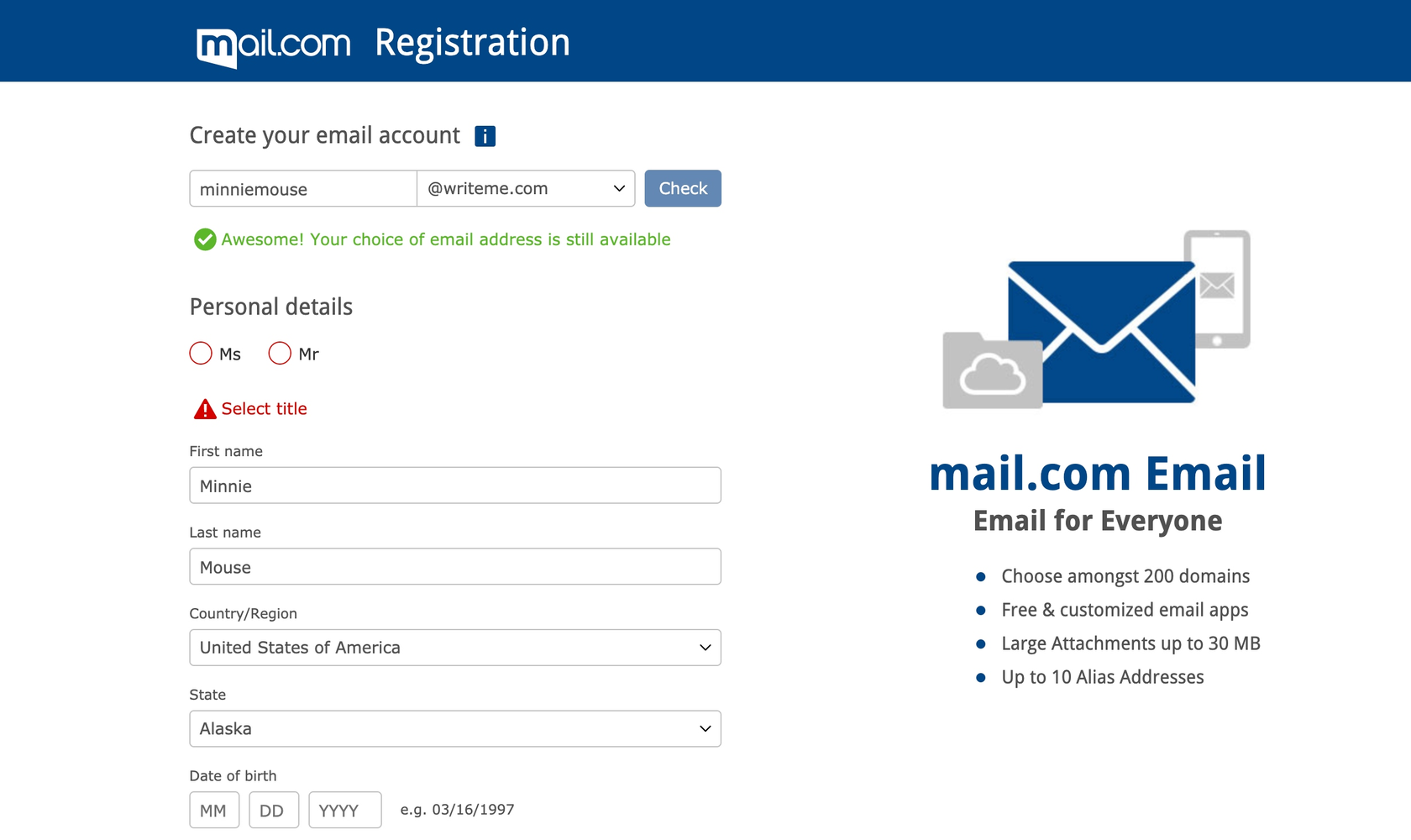 Insert the information to set up your email account, making sure you don’t enter any of your real personal information.