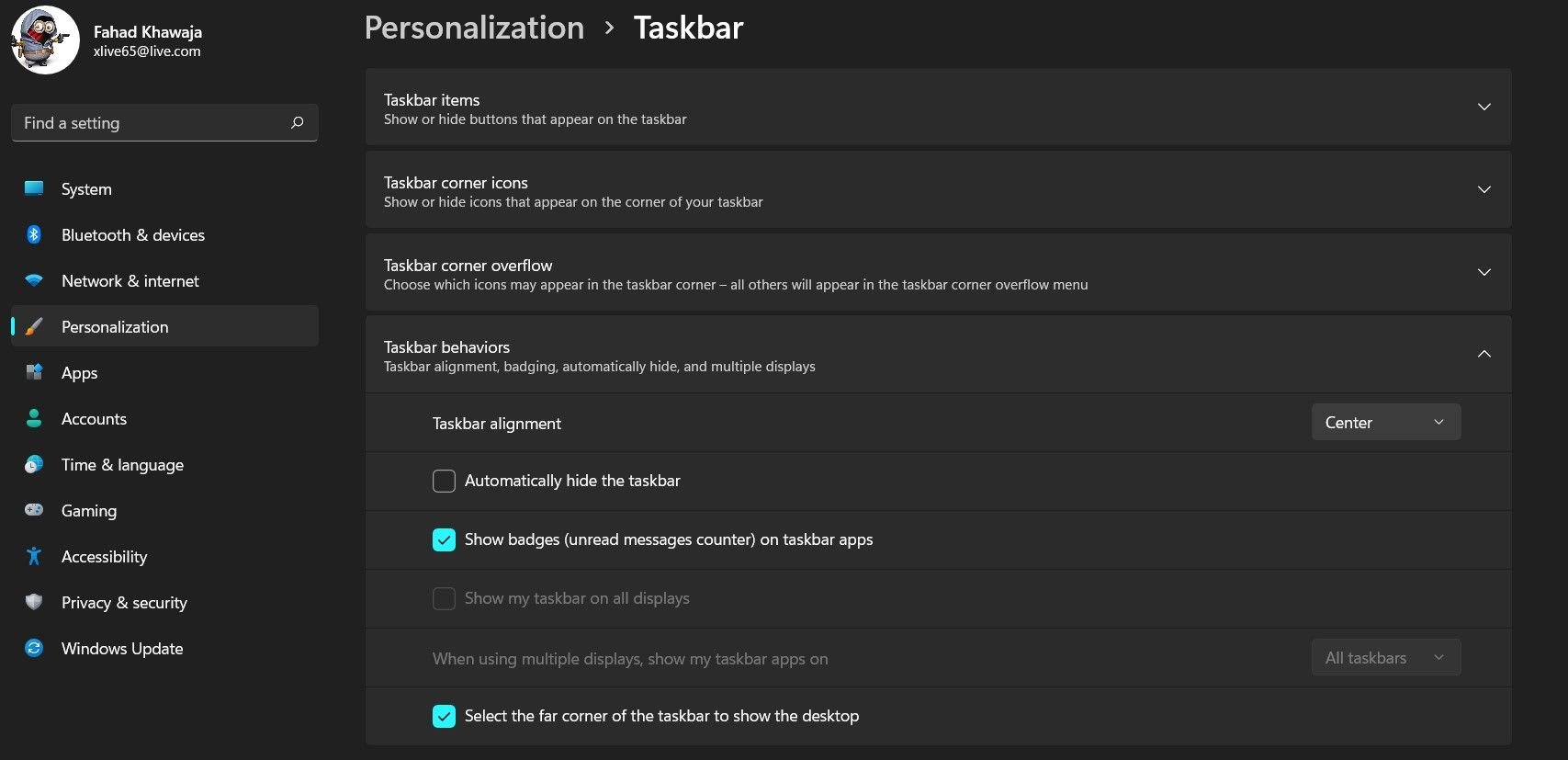 Unlike previous generations of Windows, in Windows 11, you can personalize the alignment of icons and even show or hide the notification badges.