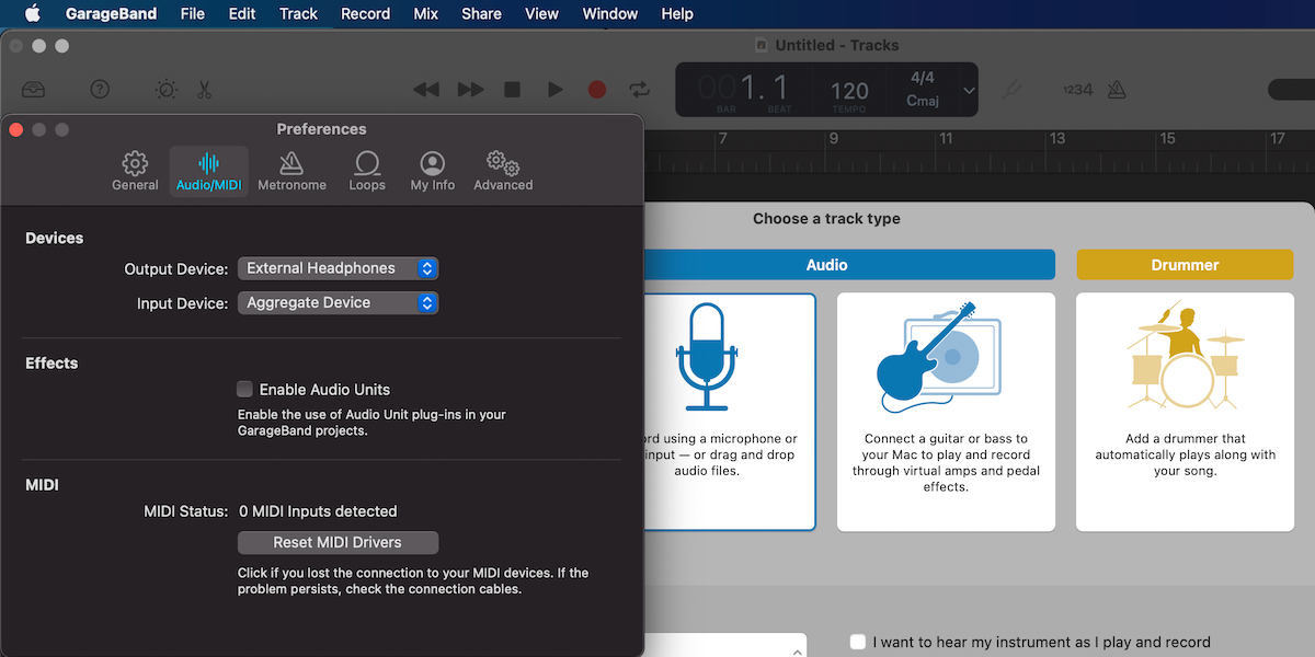 Step Two: Selecting Your Aggregate Device on GarageBand