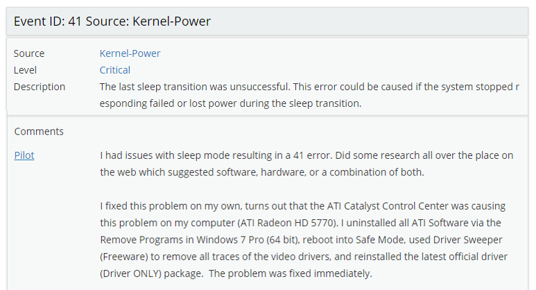 The site’s search engine will return matching events, accompanied by helpful comments from the EventID.Net community. For BSoD errors, there are several possible causes and solutions, all of which are clearly explained.