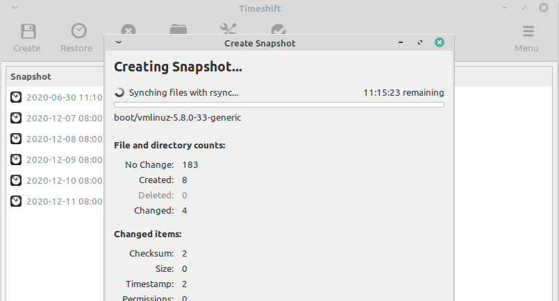 This is a precautionary measure in case of the unfortunate result that Mint 20 doesn’t work on your system. If that happens, you may not be able use your PC anymore. In such a scenario, a system snapshot will allow you to restore your PC to its pre-upgrade state.