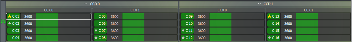 What you see here is every single core on your CPU. Ryzen CPUs are subdivided into CCXs and CCDs. To put it simply, there will be up to 4 cores in each CCX, and there is always 1 or 2 CCXs in a CCD.