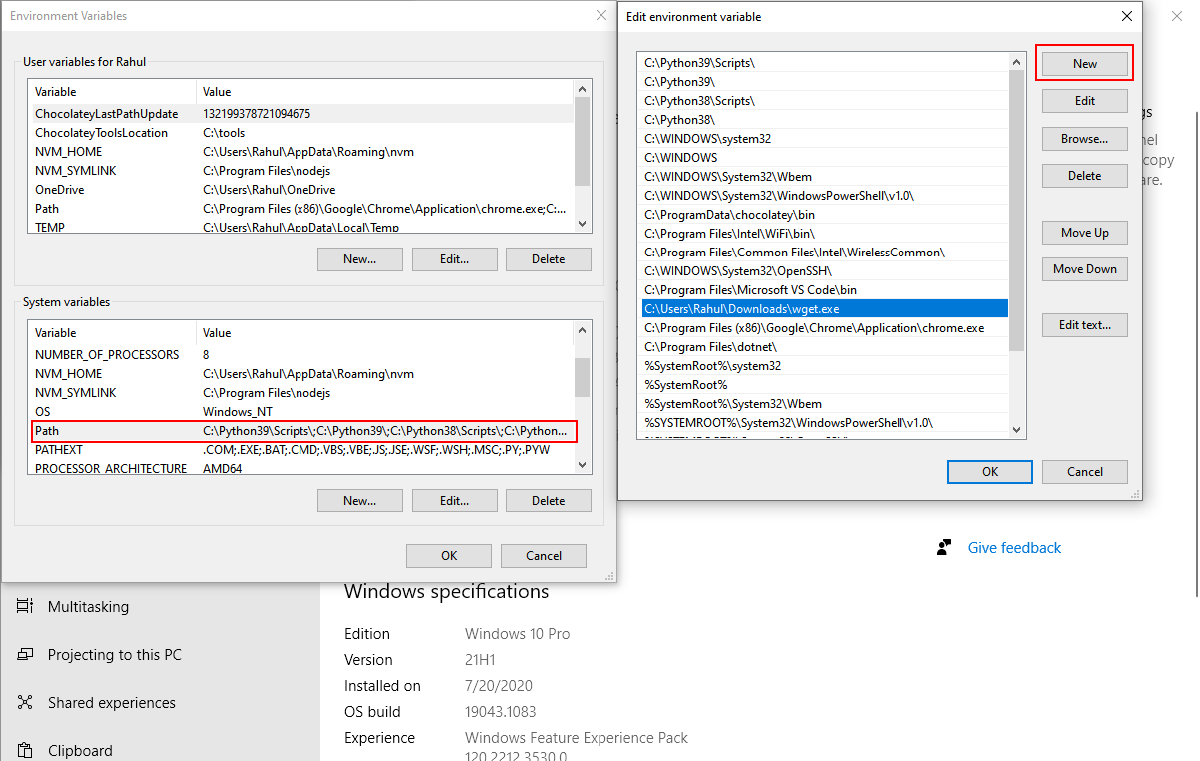 Select Path under System variables and click Edit. Then, click on the New button located in the upper-right corner of the window. Type: