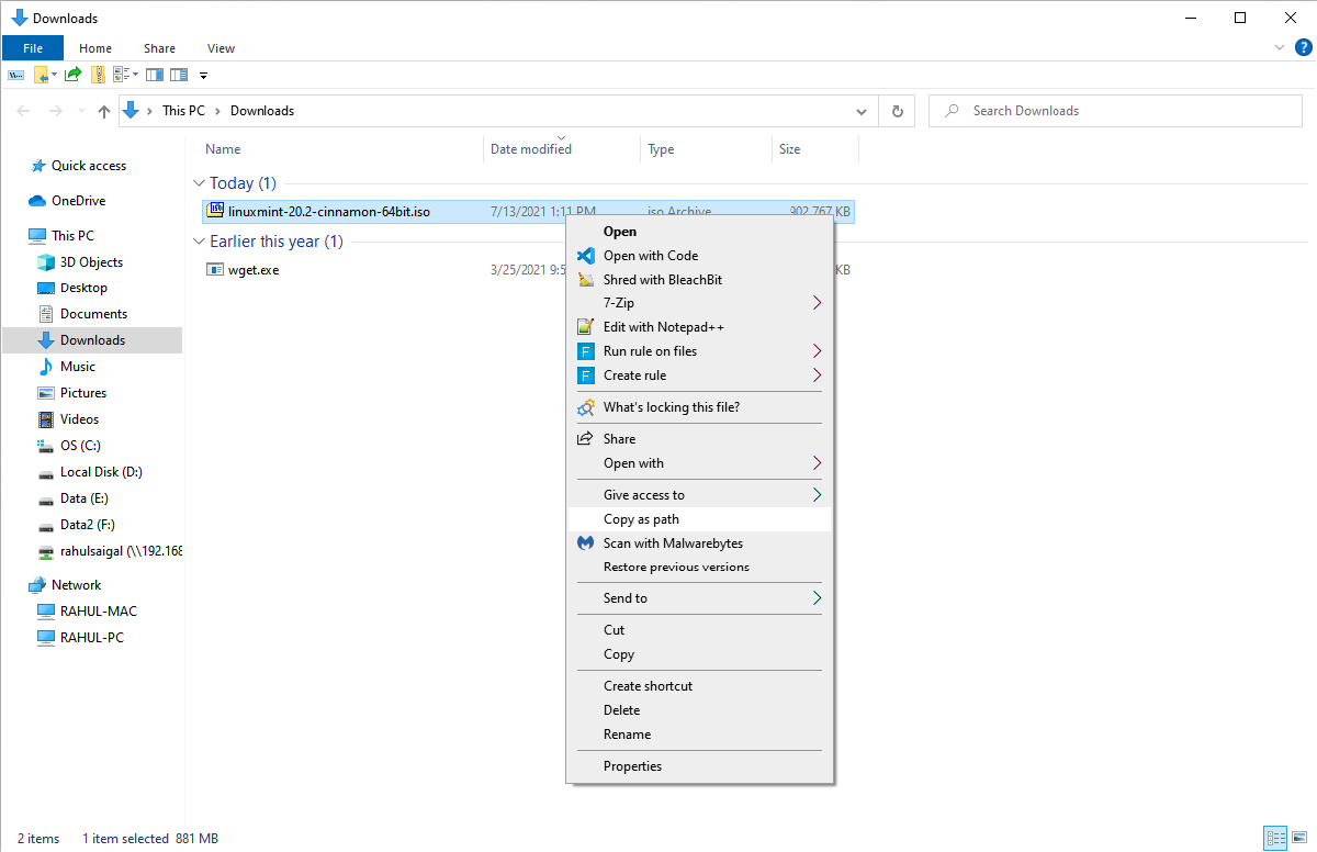 "C:UsersRahulDownloadslinuxmint-20.2-cinnamon-64bit.iso""http://mirrors.evowise.com/linuxmint/stable/20.2/linuxmint-20.2-cinnamon-64bit.iso"