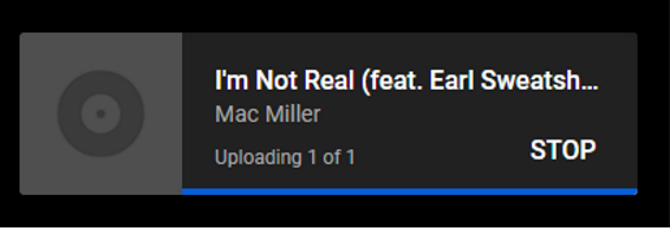 Finally, if this is your first time uploading, YouTube Music will ask you to review and accept its user policy. If you do, select Accept. You’ll see the upload process appear in the bottom-left corner of your screen.