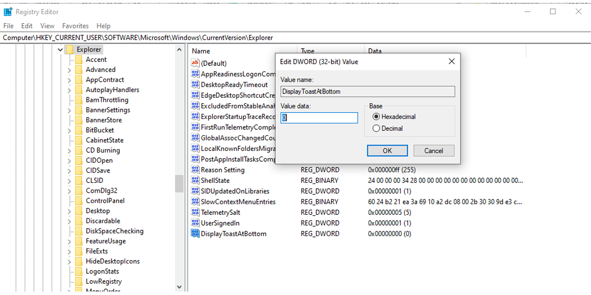 By default, Windows 10 displays notification banners at the bottom of the screen. However, you can use Registry Editor to display them at the top of your screen. Here is how you can do it: