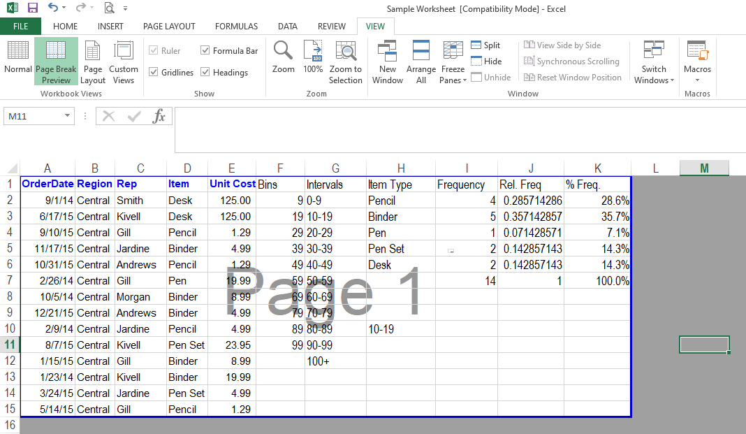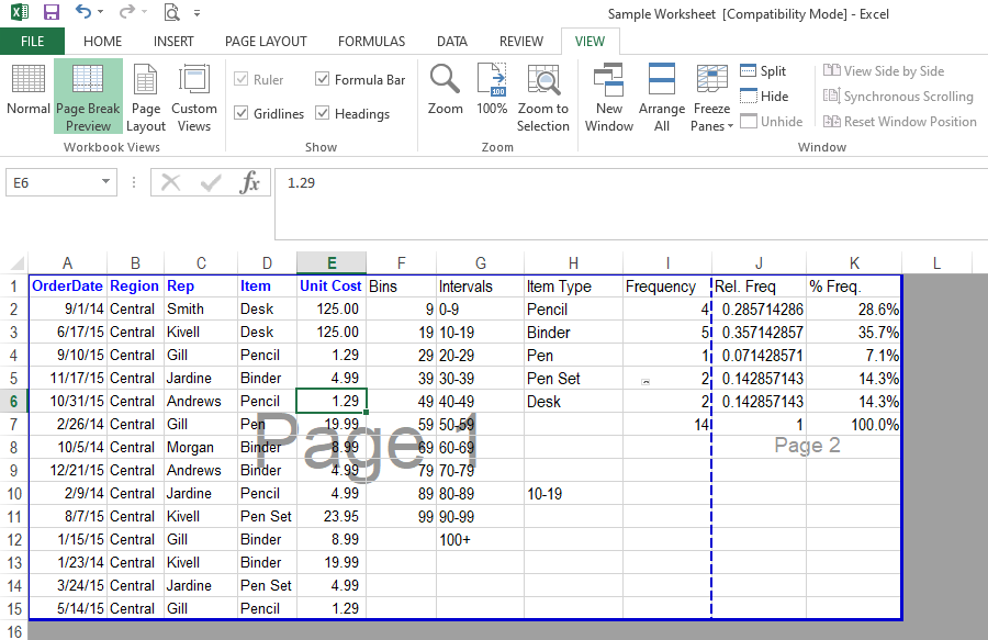This view allows you to see the page breaks in your spreadsheet. If you want, you can adjust page breaks by simply dragging and clicking with the help of a mouse.