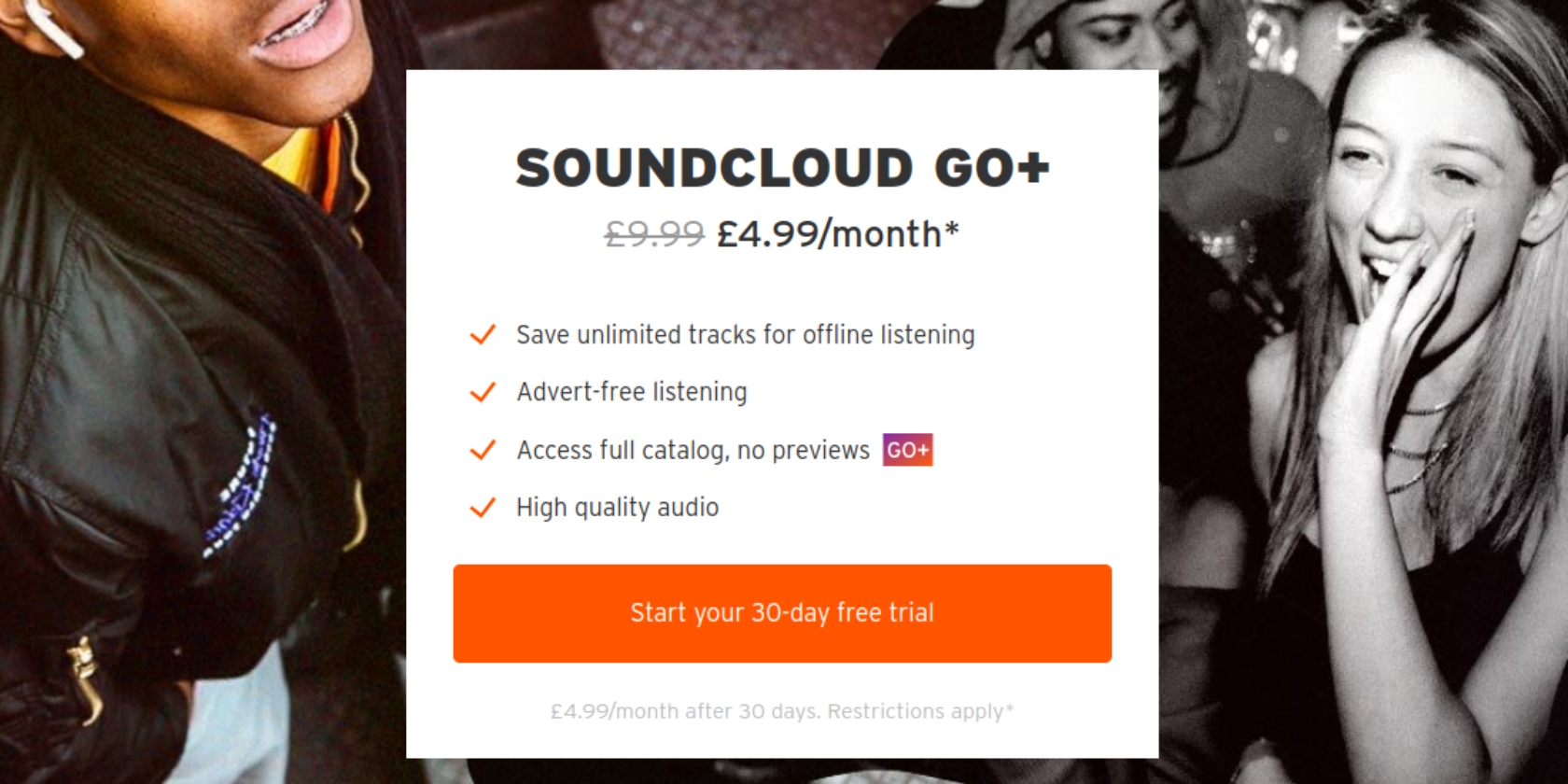 SoundCloud Go+ is SoundCloud’s premium offering. It offers subscribers hundreds of millions of tracks from both new and established artists. SoundCloud Go+ also removes the ads, offers high-quality audio, and adds the option to download music for offline listening.
