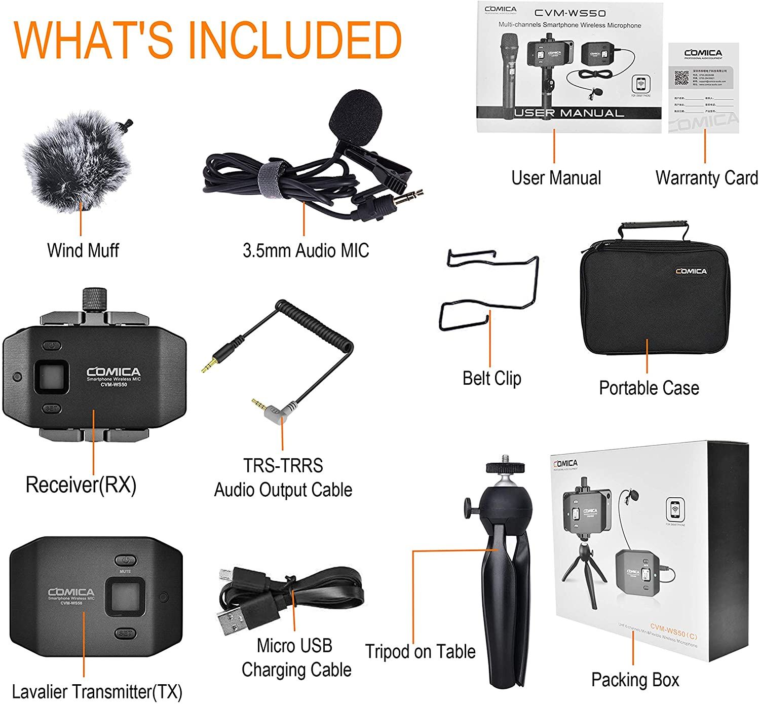 The Comica CVM-WS50(C) is the perfect solution for vloggers who want to record clear audio when recording with a smartphone. The compact kit includes everything you need to get started, including a wind muff for outdoor use.