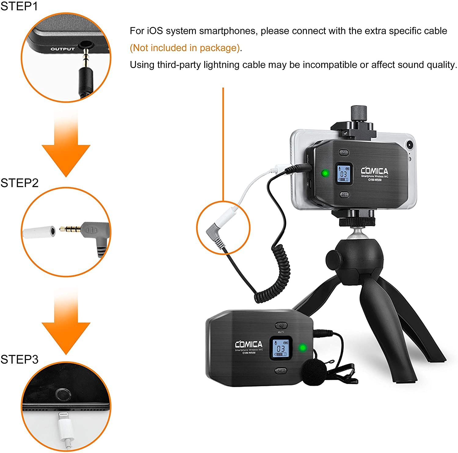 The overall setup for the Comica CVM-WS50(C) is simple. However, iPhone users will need to purchase an additional connector that isn’t included. There are a few oddities, like putting your phone on airplane mode to remove the static. However, this Comica set is a solid and affordable choice.