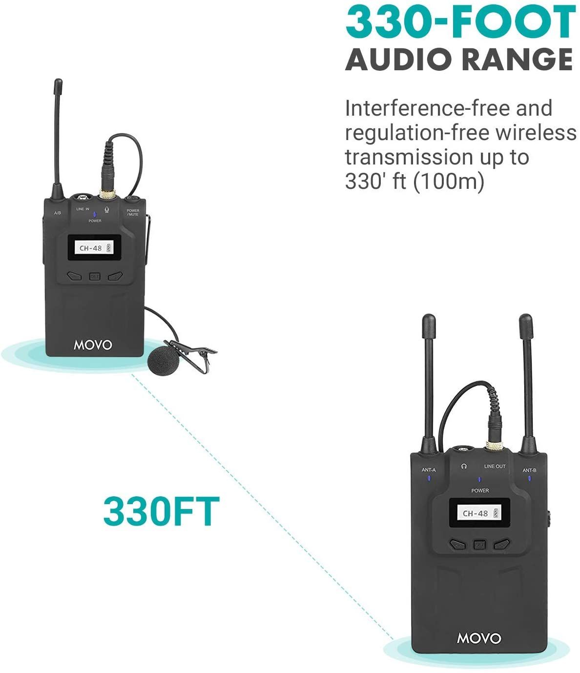The Movo WMIC80 offers an over 300-foot range with no obstacles and up to 200 feet with obstacles. This provides plenty of flexibility when recording. The cordless capture is excellent for vloggers, recording interviews, and much more.