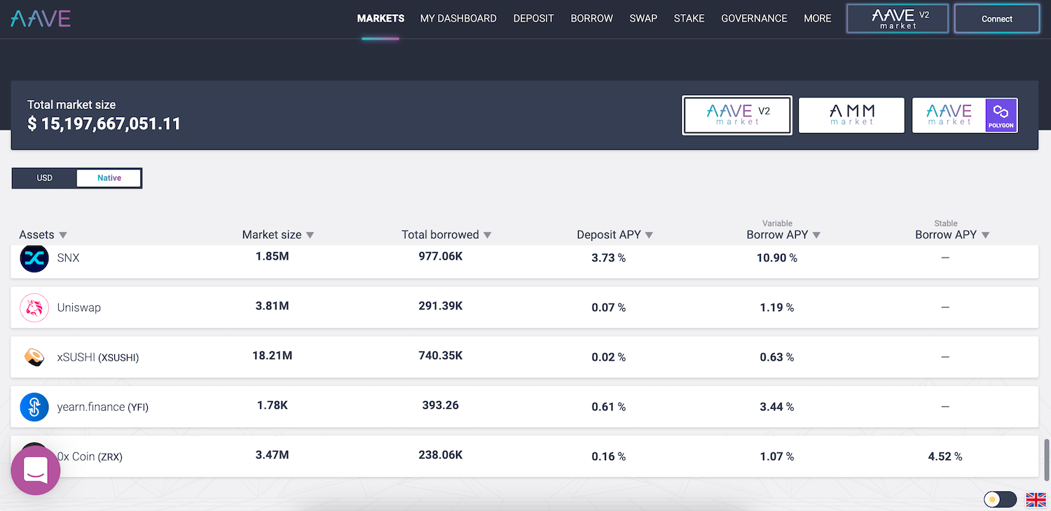 Depositors can earn a passive income based on the market demand of the cryptocurrency they deposit on Aave. Depositors can also use their deposited funds as collateral to borrow other assets with a fixed or variable interest rate.