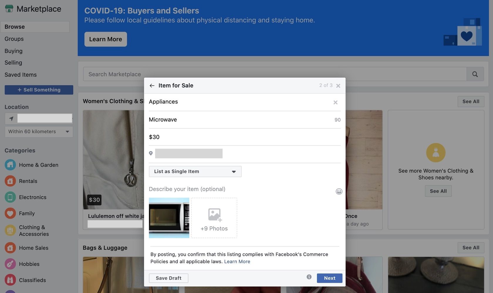 If you are unsure about whether you are able to sell a specific item on Marketplace, check Facebook’s Commerce Policy. If you are still unsure about selling the item, it’s best to err on the side of caution and not post the ad. Facebook will suspend your use of Marketplace if you post something that goes against its policies.