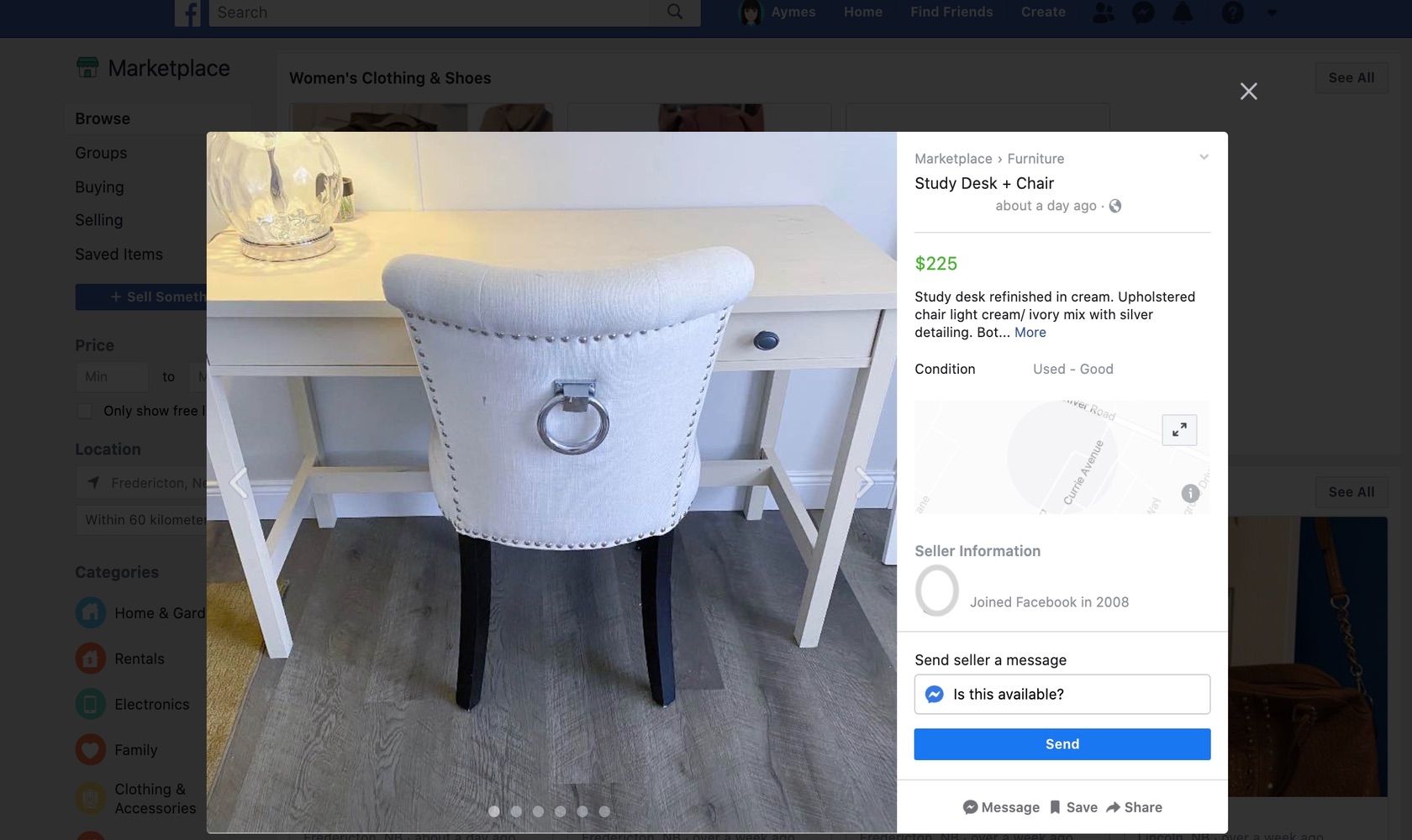 On Facebook Marketplace, you can even sell or buy big items like a couch.