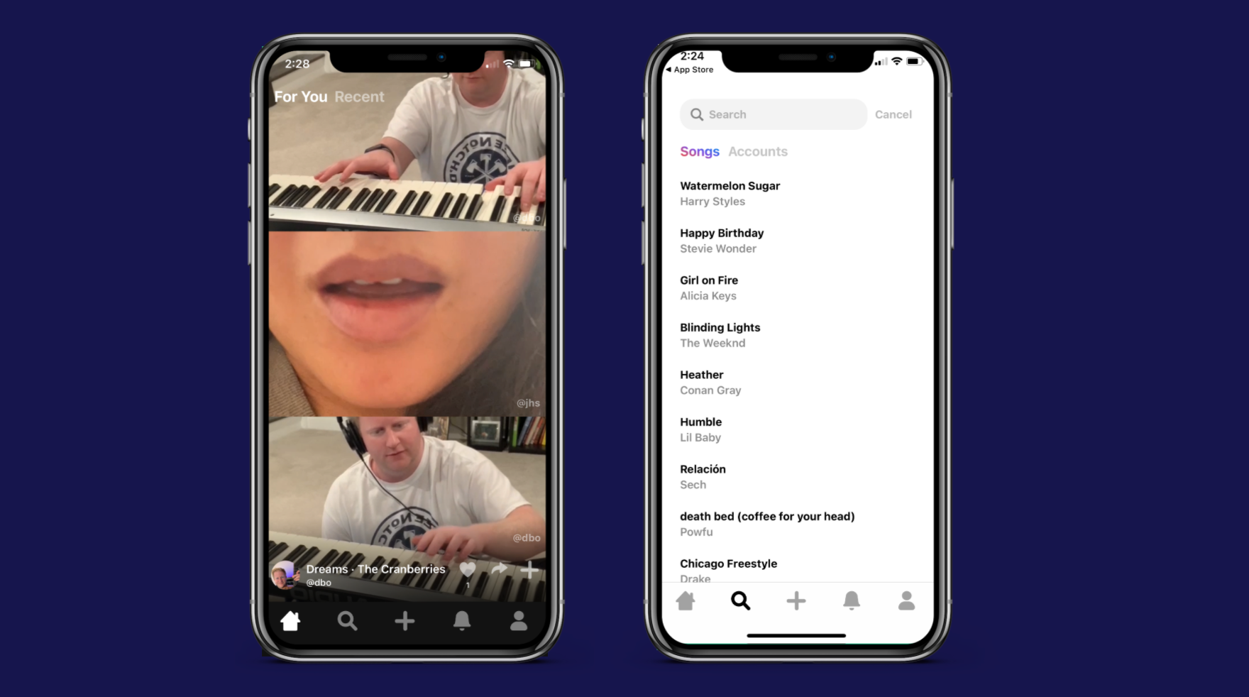 Instead of watching Collabs through the public feed, you can also search Collabs by the songs they cover or by user accounts.